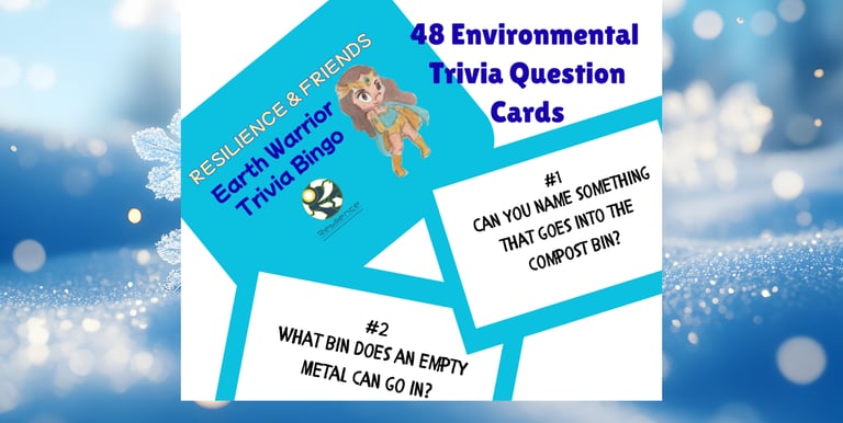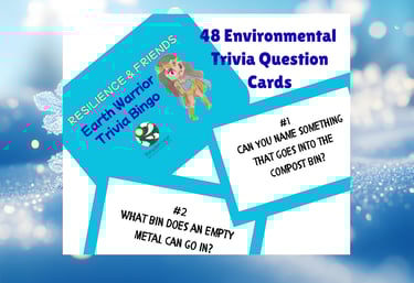 A fast-paced eco-game packed with 48 sustainability trivia questions. Perfect for classrooms, homeschools, family game nights, and after-school programs.