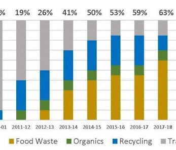 Central Contra Costa Solid Waste Authority — RecycleSmart Schools Program: Supported the Recycle Smart Program serving 8 school districts and 60+ schools, helping increase average diversion from 20% (2013) to 66% (2019). Outcomes included 17 schools exceeding 75% diversion and 24 schools achieving 50–74% diversion. The program received the SWANA Excellence Award (2017) for Educational Program.
